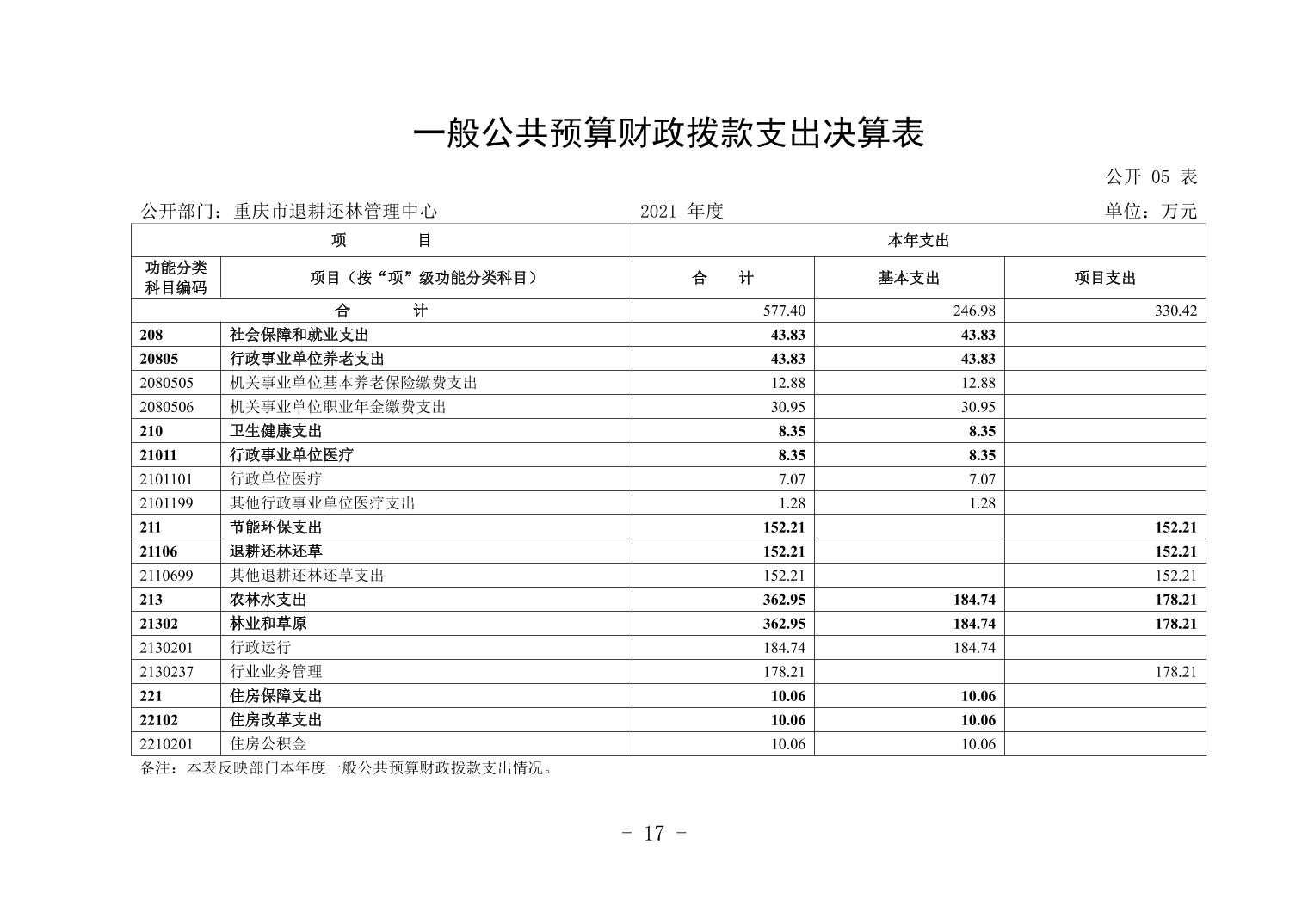 重庆市退耕还林管理中心2021年度部门决算公开
