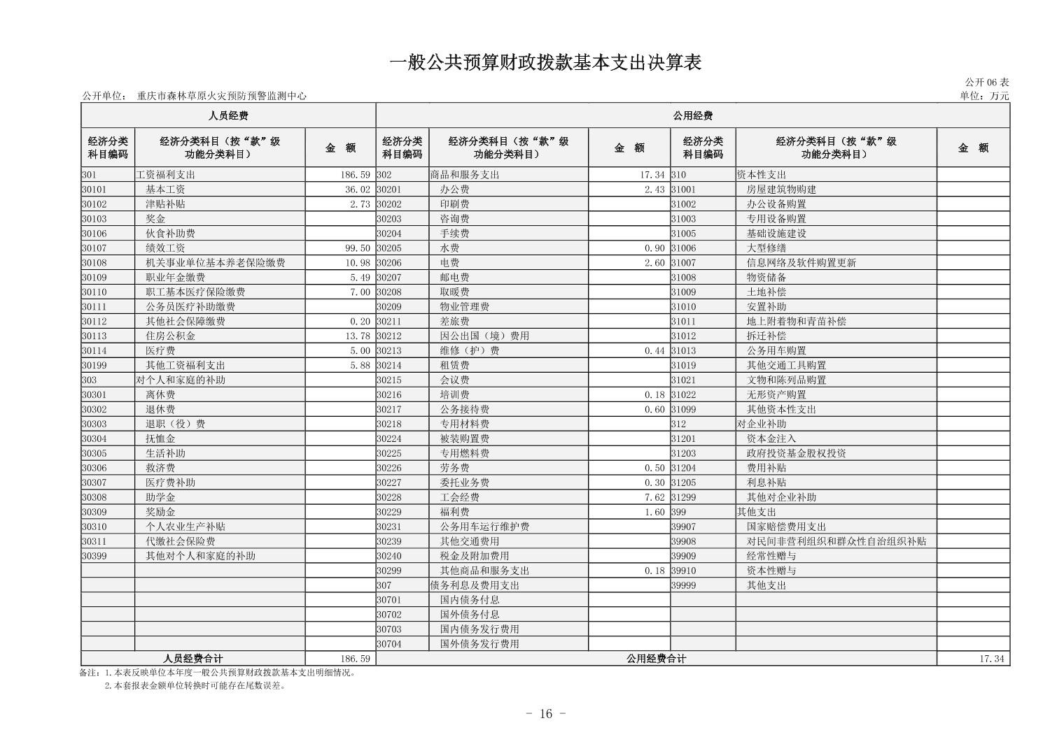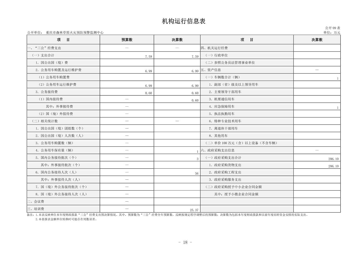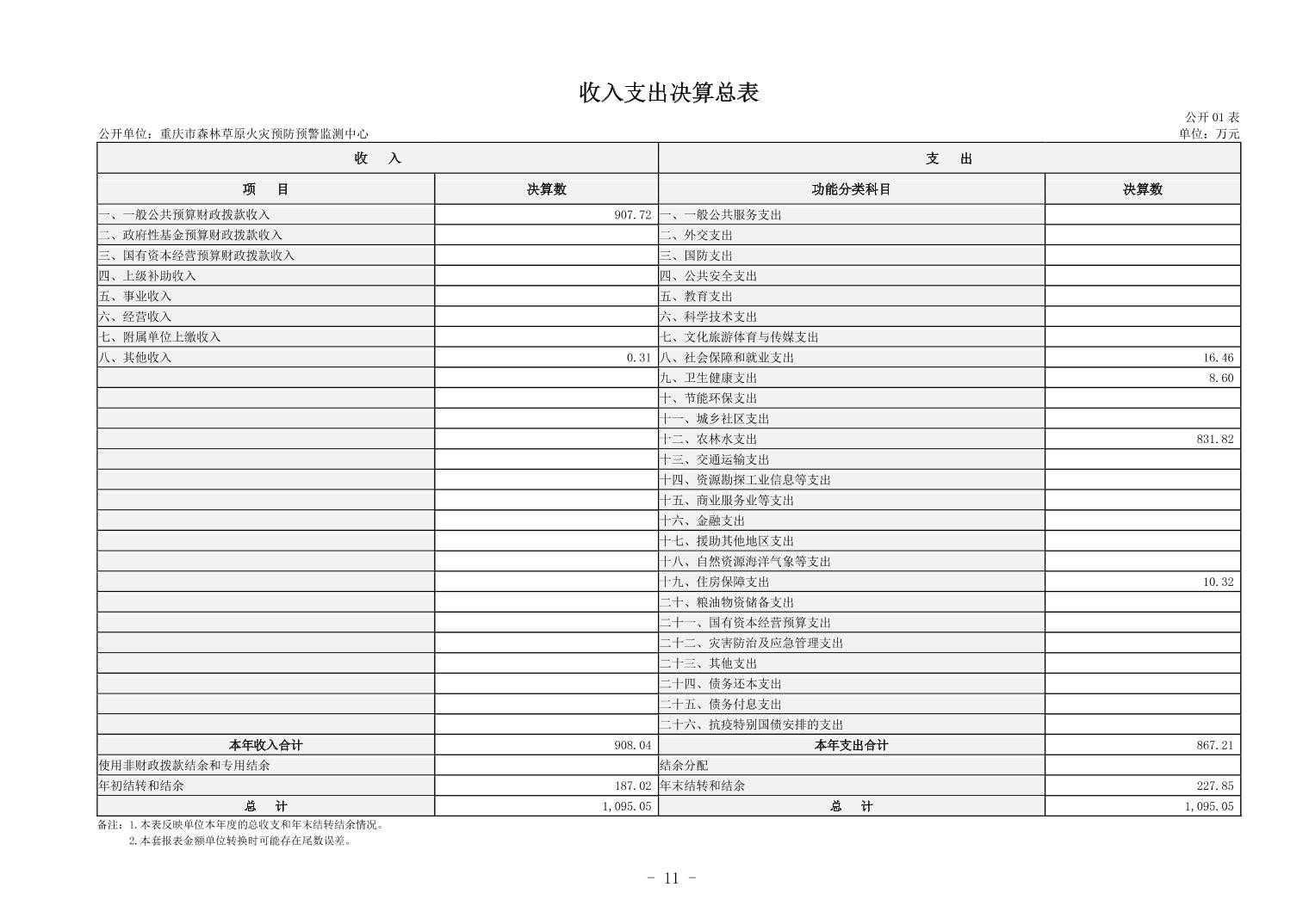 重庆市森林草原火灾预防预警监测中心决算公开说明及公开报表