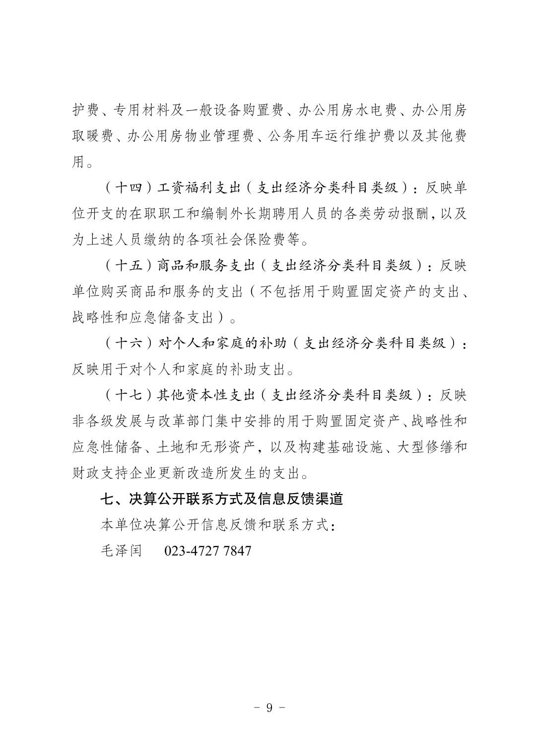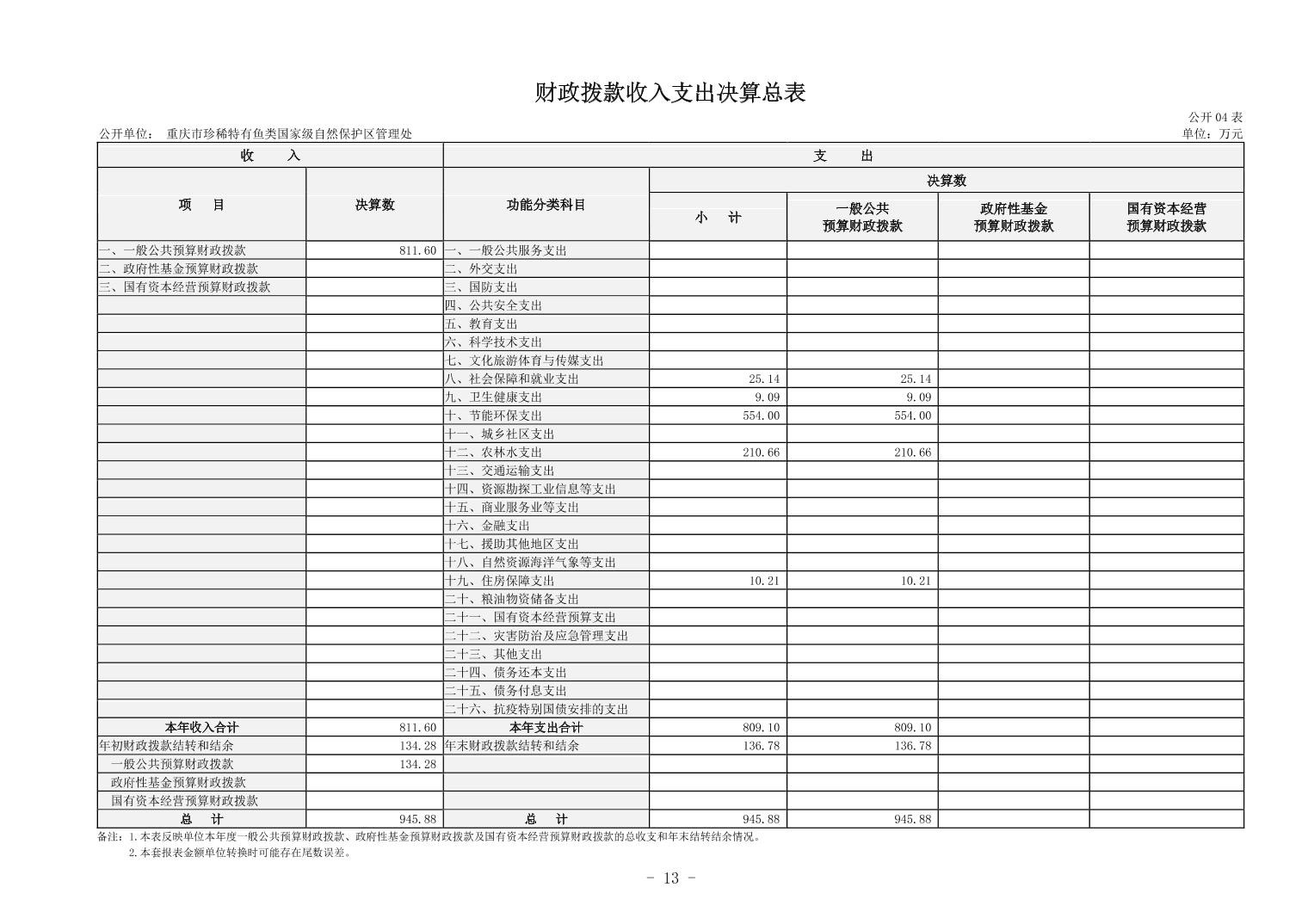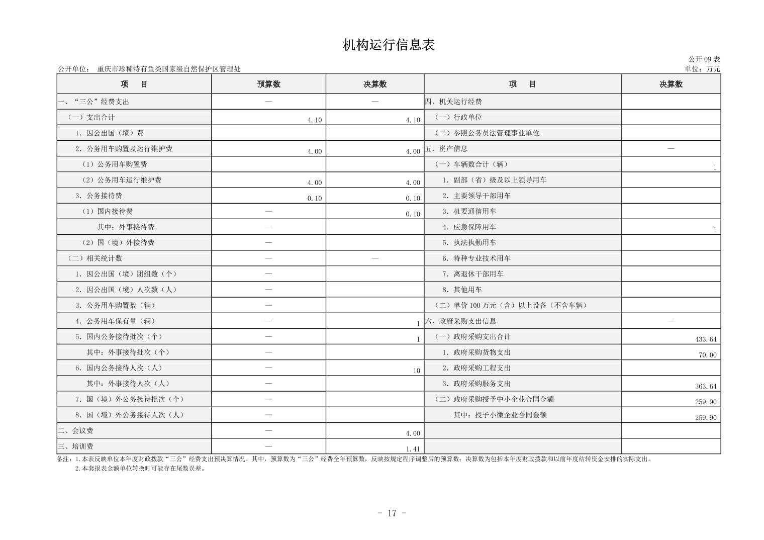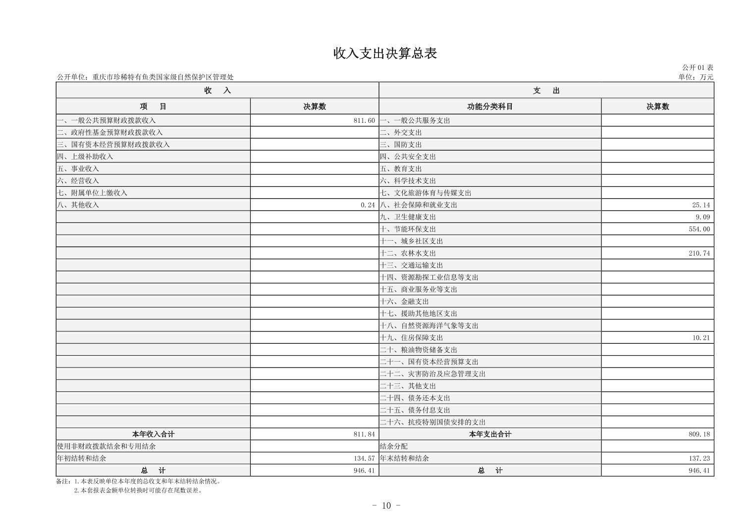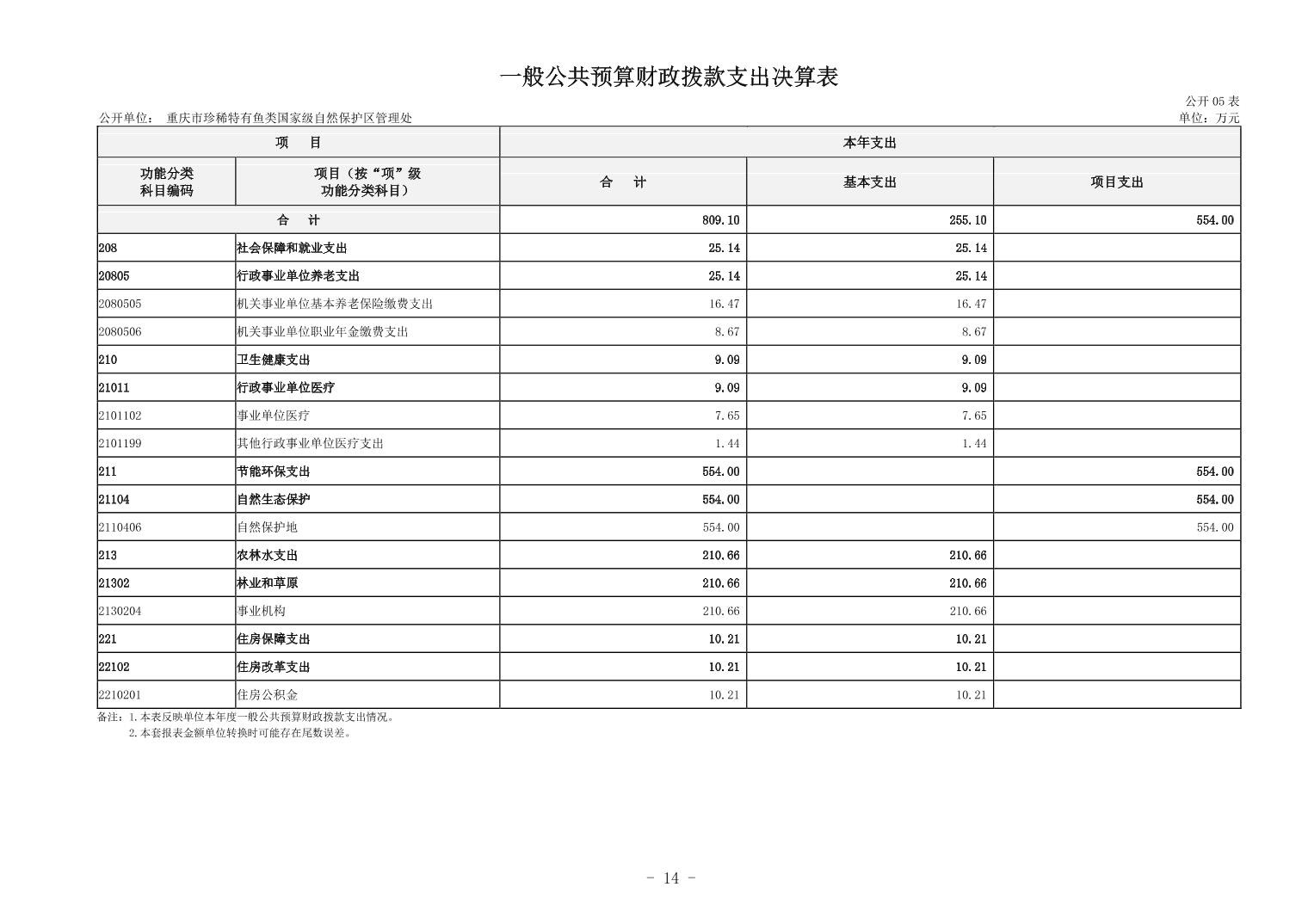 重庆市珍稀特有鱼类国家级自然保护区管理处决算公开说明及公开报表